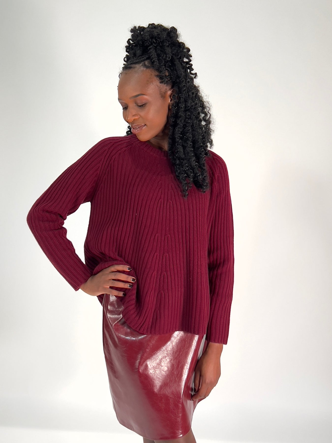• Kunstleder-Stretchlack in burgundrot