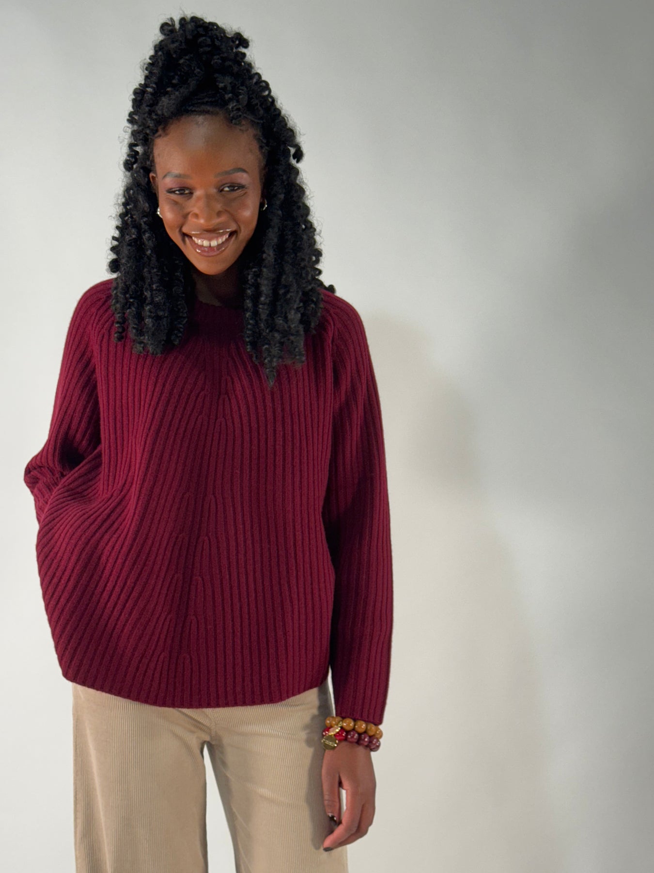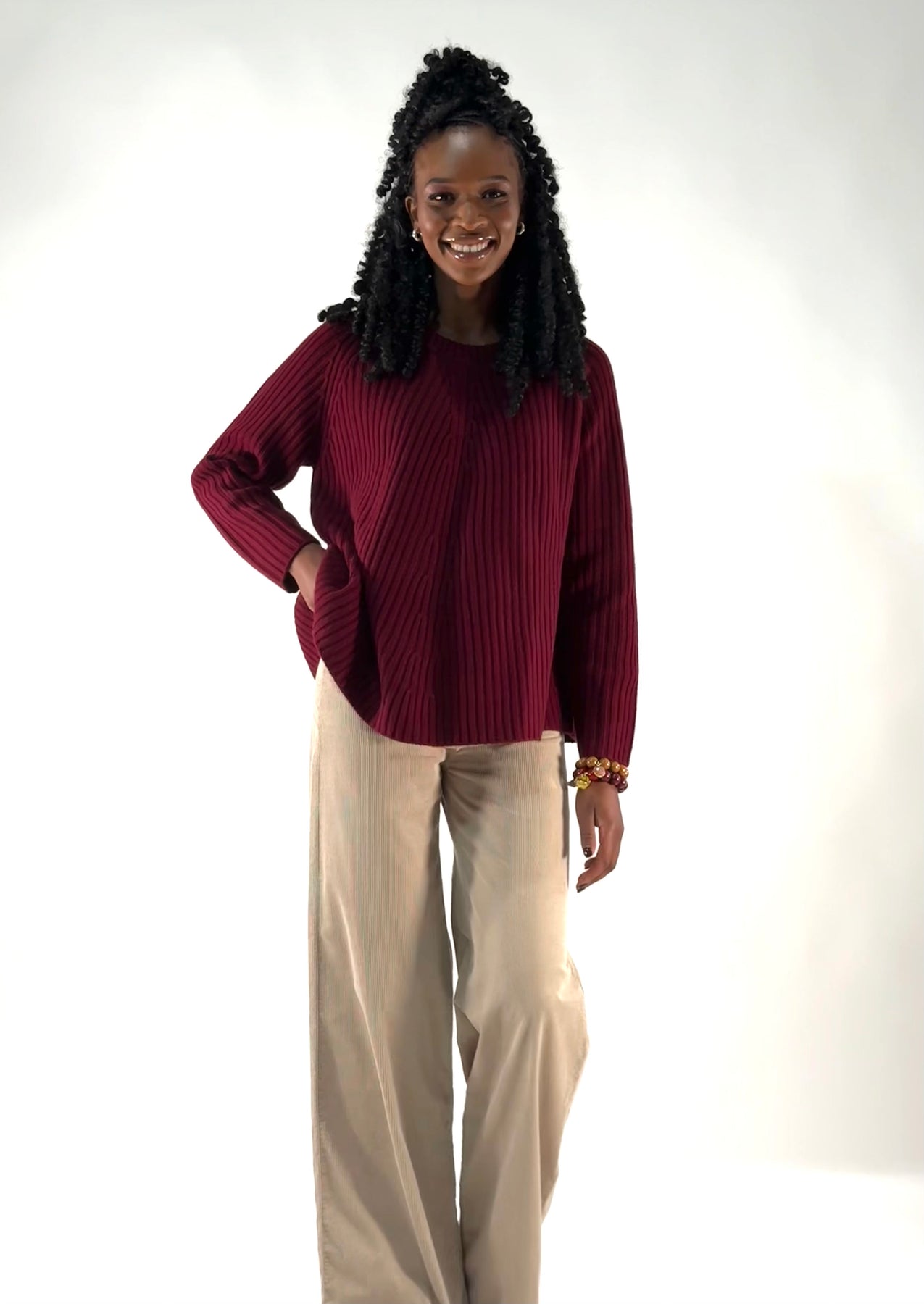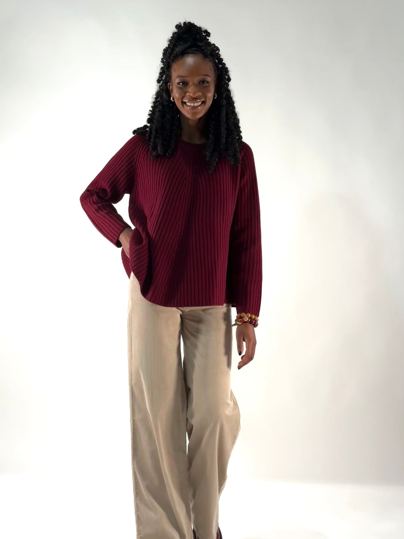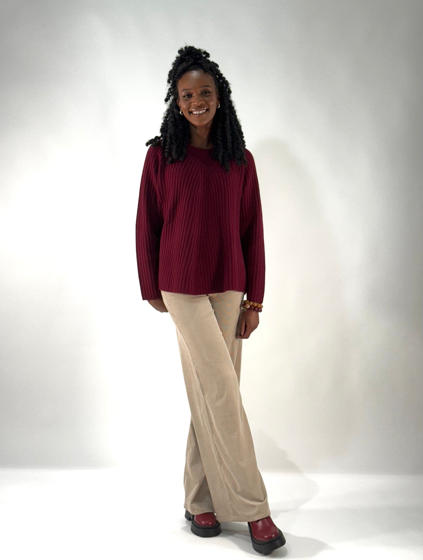 • Legerer Woll-Pullover im Rippstrick mit Rundhals-Ausschnitt