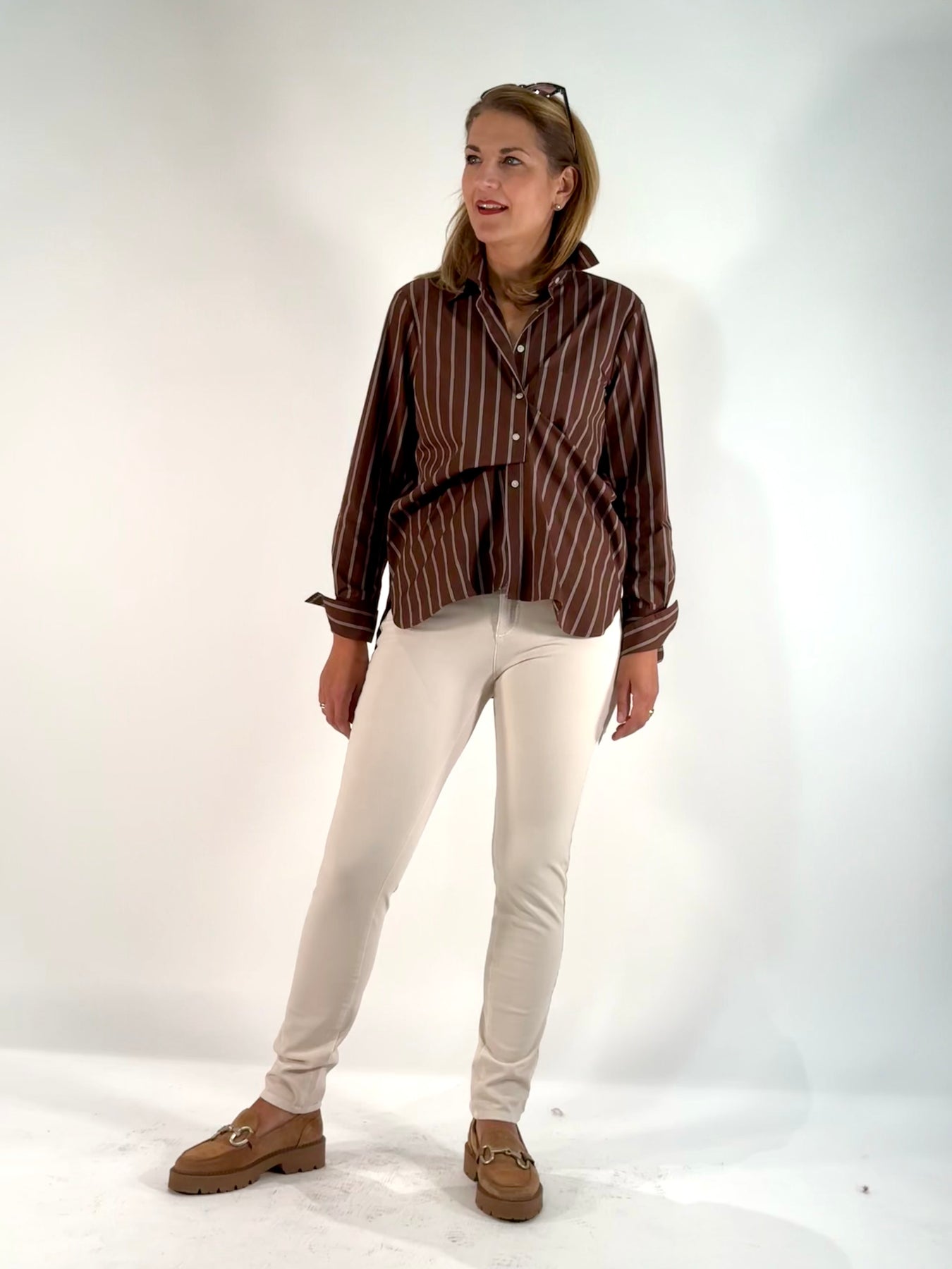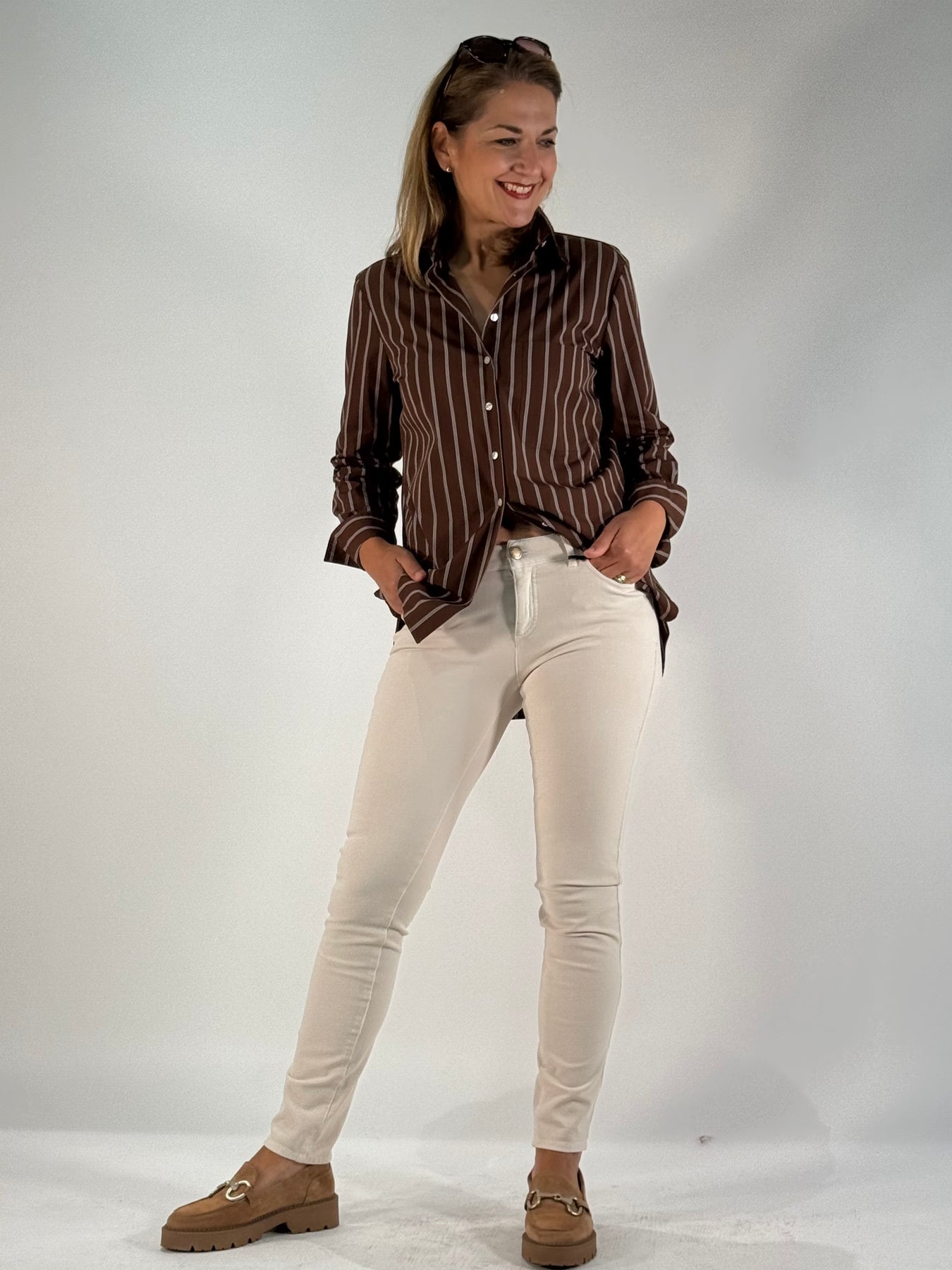 • Legere, längere Bluse in gestreiftem Popeline