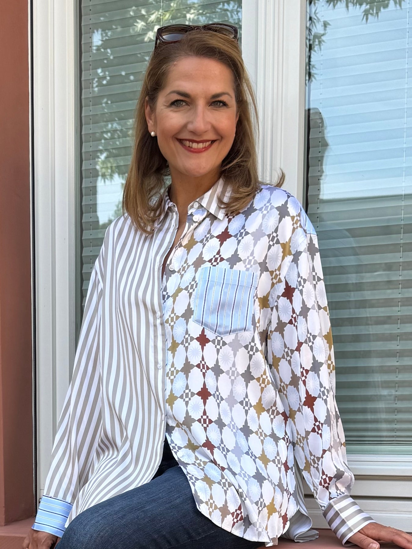 Seiden-Hemdbluse im Multiprint