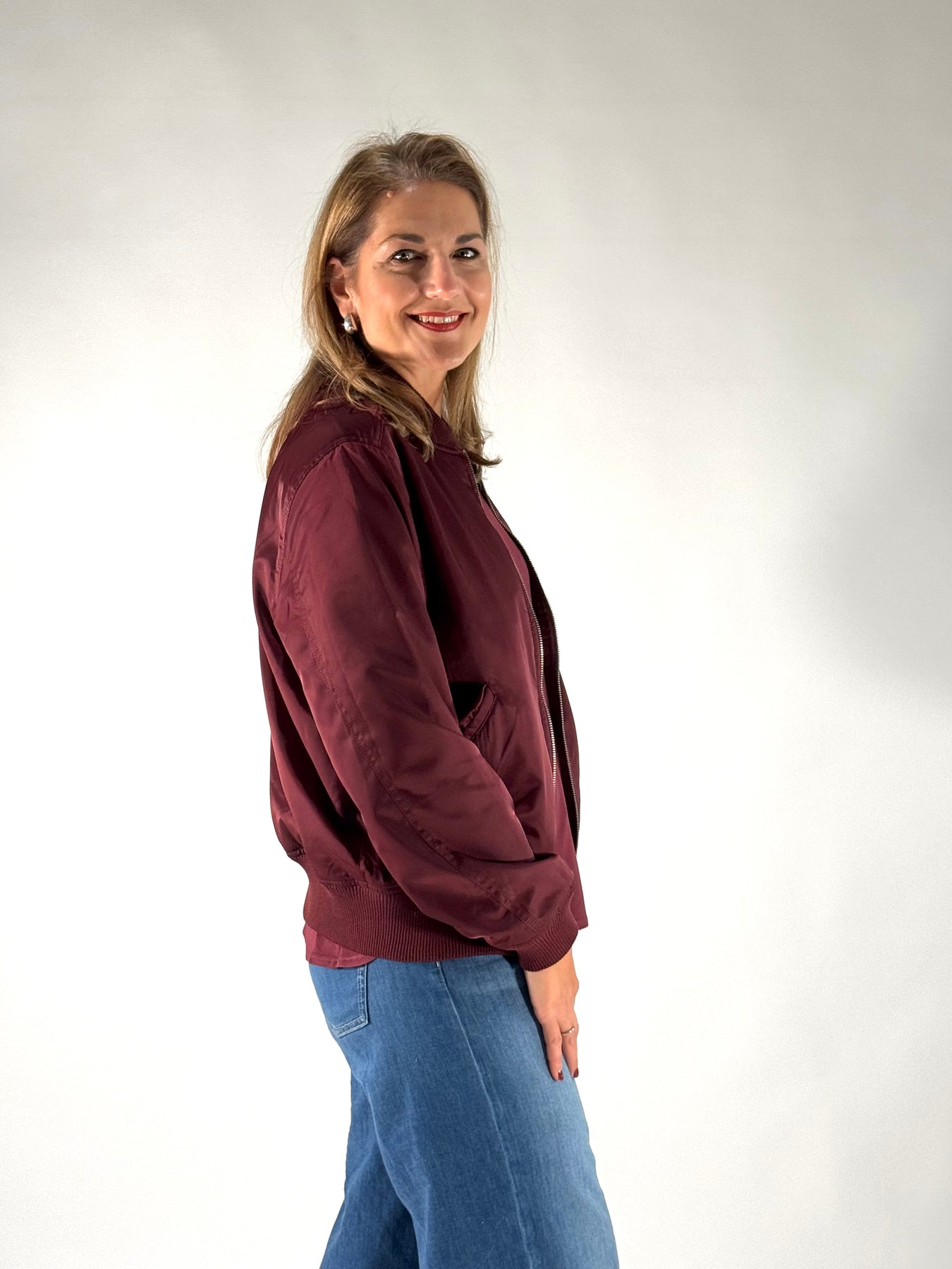 • Bomber-Jacke in Bordeauxrot mit edlem Matt-Glanz-Effekt